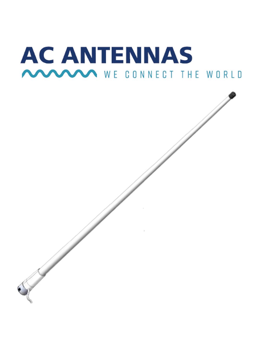 Es una antena omnidireccional de alta calidad diseñada para aplicaciones marinas y terrestres. Está fabricada en fibra de vidrio con tecnología de engarzado, lo que le proporciona una estructura hasta cinco veces más resistente. Incluye un cable RG58C/U de 6 metros, utiliza elementos radiantes de cobre y cuenta con una férula compatible con montajes de rosca estándar de 1"-14 TPI. Su diseño robusto y materiales anticorrosivos garantizan un rendimiento fiable incluso en condiciones ambientales adversas.
