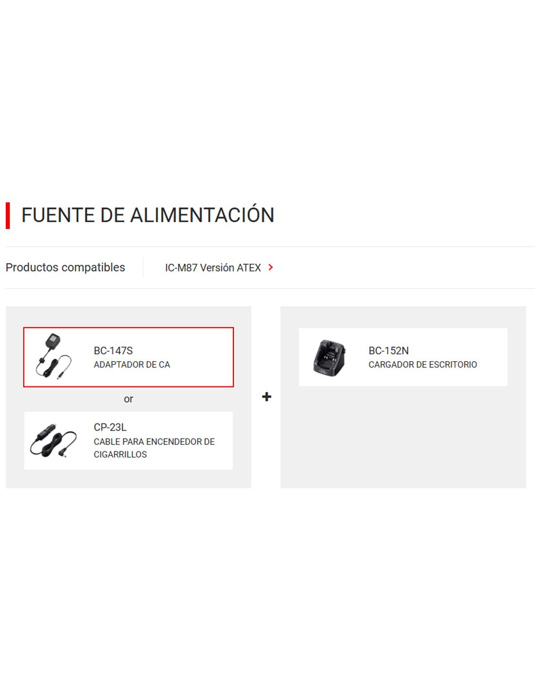 Compatible con los walkies de Icom IC-M87, IC-GM1600E