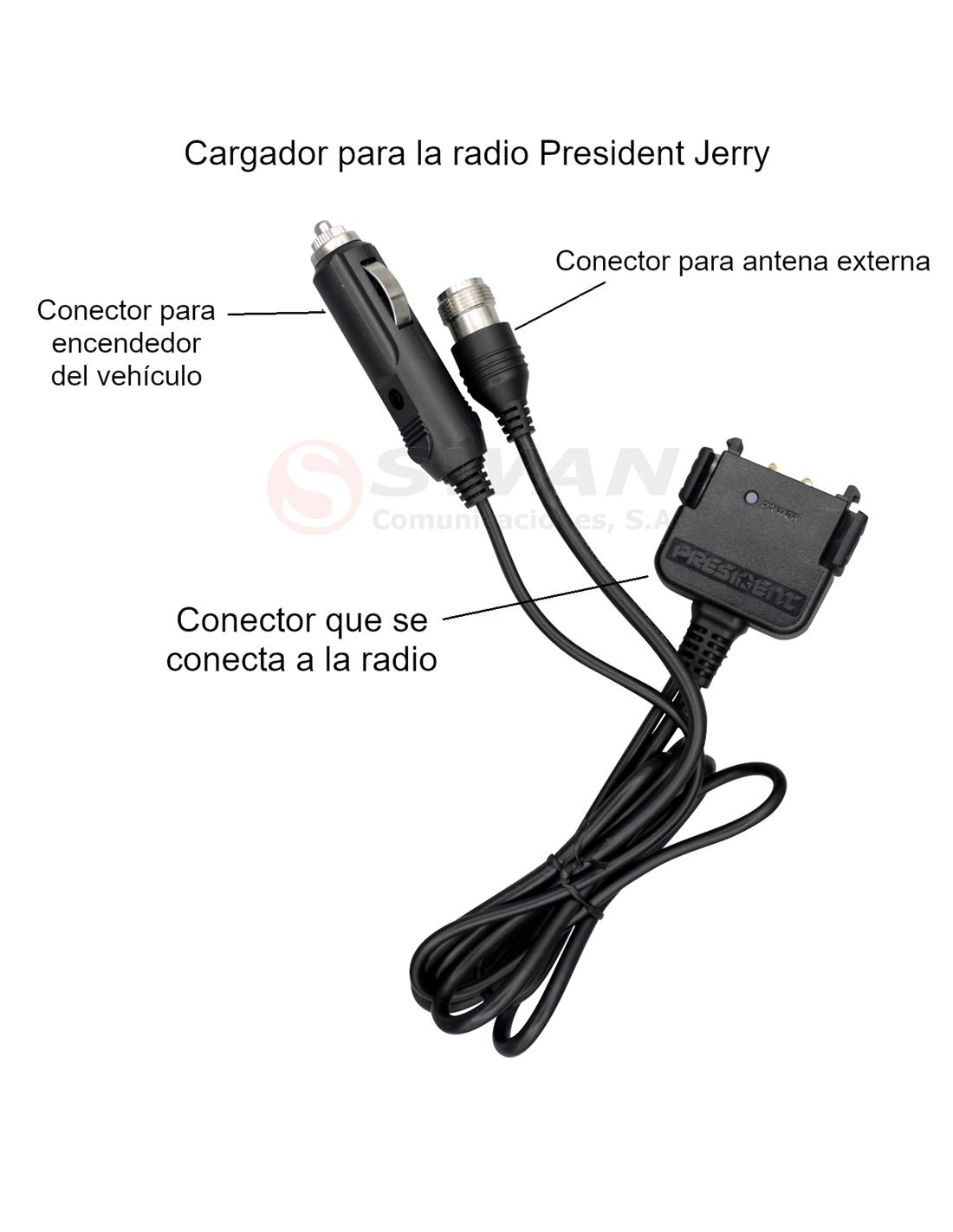 · Cargador con conector de mechero de vehículo que incluye también un conector para una antena externa