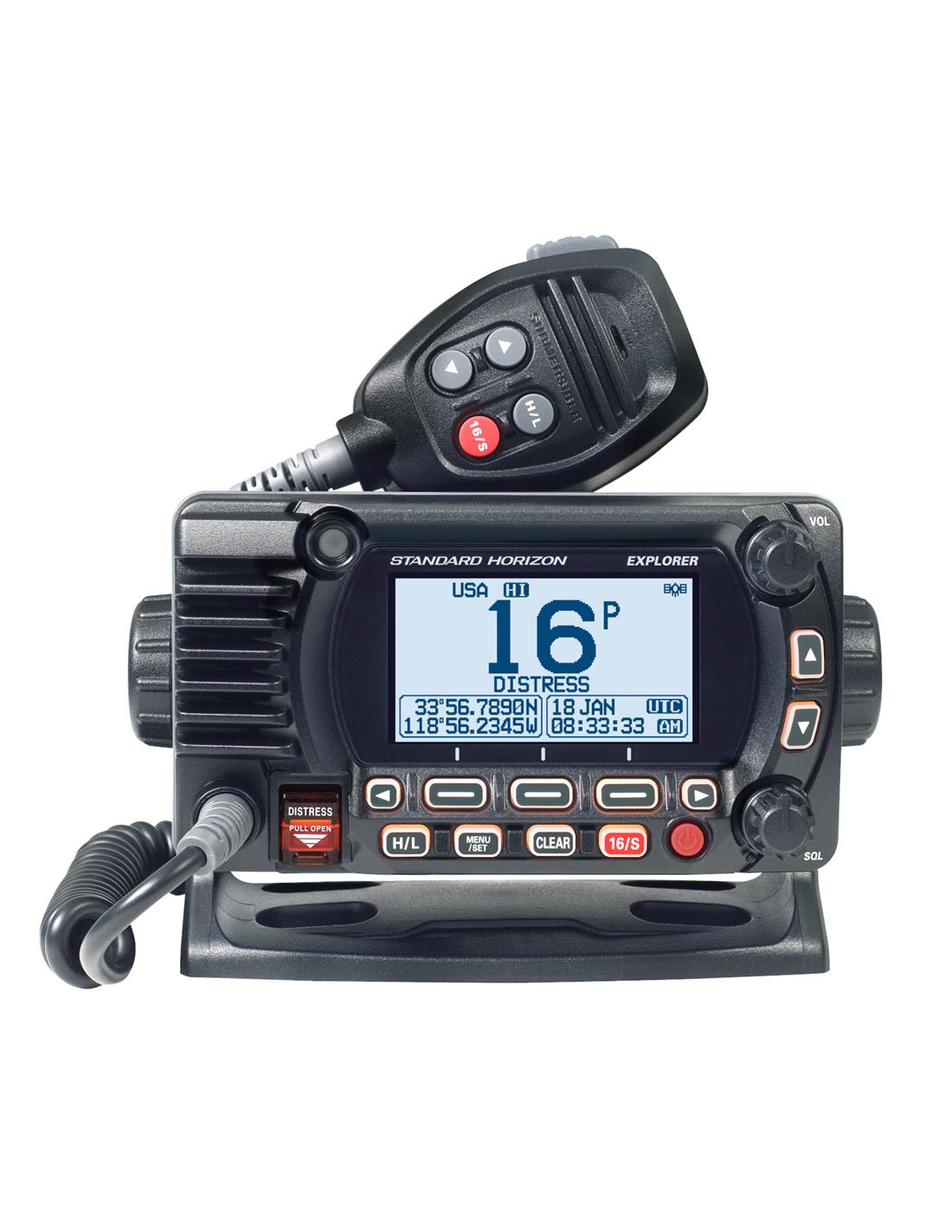 La emisora GX1800GPS/E incluye un GPS interno de 66 canales en el panel frontal, sin necesidad de cableado de la radio a un GPS para DSC. Asi, las llamadas DSC, el intercambio de posiciones, la navegación de puntos de referencia, la navegación a las llamadas de socorro DSC se pueden realizar fácilmente. También tiene un DSC clase D con un receptor de canal 70 separado, que permite recibir llamadas DSC incluso cuando se escuchan comunicaciones. Cuando está activada la función DSC DISTRESS transmite un MAYDAY digital que incluye identificación de la embarcación, la latitud/longitud y la hora (con GPS conectado), para facilitar una respuesta rápida. Las llamadas adicionales que se pueden hacer son Individual, Urgencia, Seguridad, Informe de posición y Enviar.
