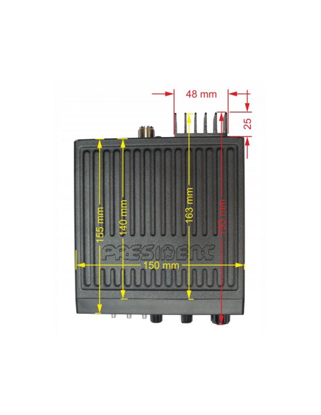 La emisora Taylor IV tiene una gran pantalla LCD multifunción, indicador de frecuencia, Roger Beep, Talkback, filtos ANL, NB, HI-CUT, beep de teclas conmutable, escáner, VOX, medidor de ROE y potencia, toma USB, preselección de canal de emergencia, public Address. Además incluye el micrófono President Digimike con NCR (Noise Reduction Circuit) que está diseñado para que su modulación sea lo más clara posible en todos los modos (AM/FM/SSB), eliminando el ruido de fondo. Dispone de 5 niveles de filtrado.