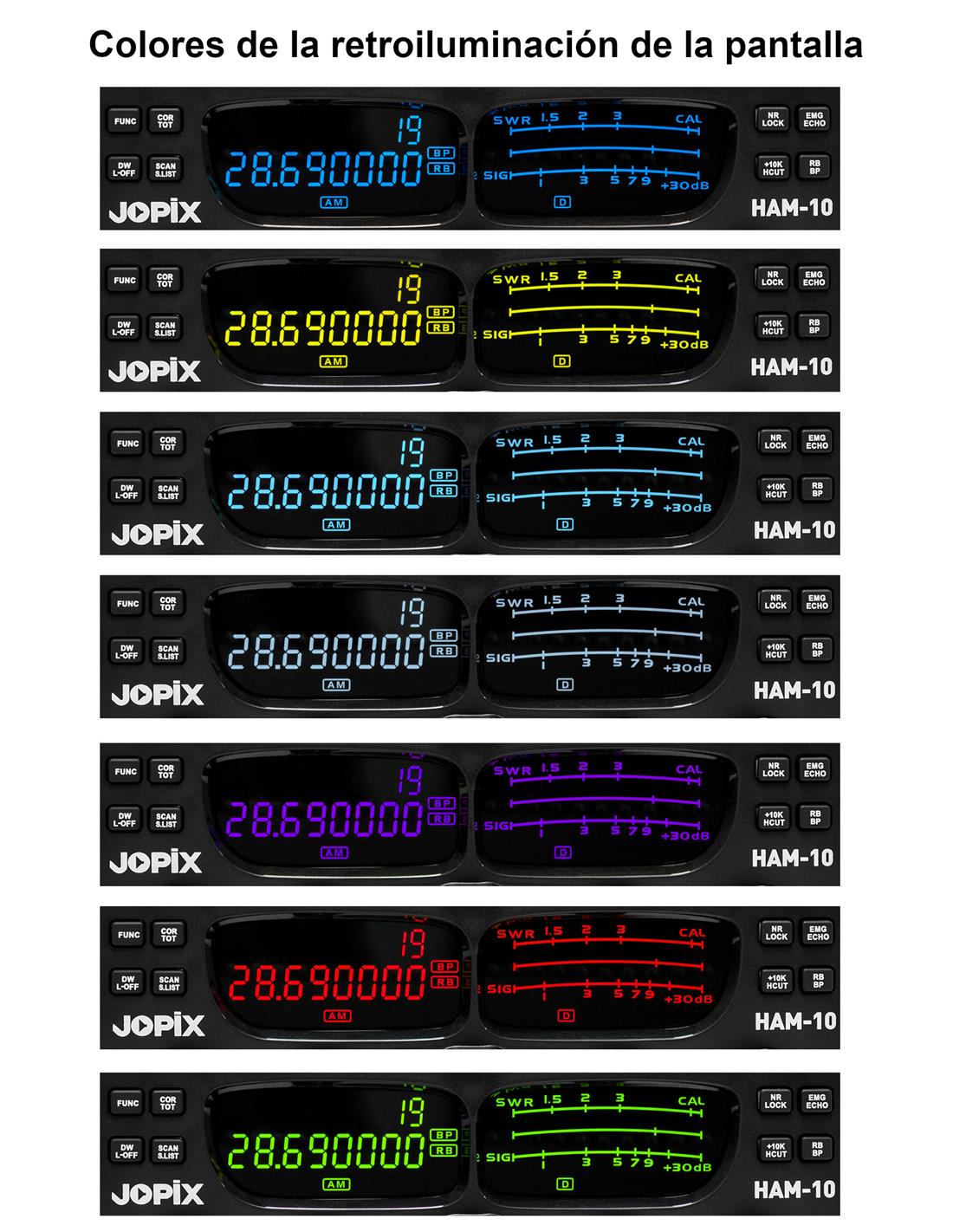 Doble pantalla LCD con medidor SWR, intensidad de señal RF, visualización de canales y frecuencia