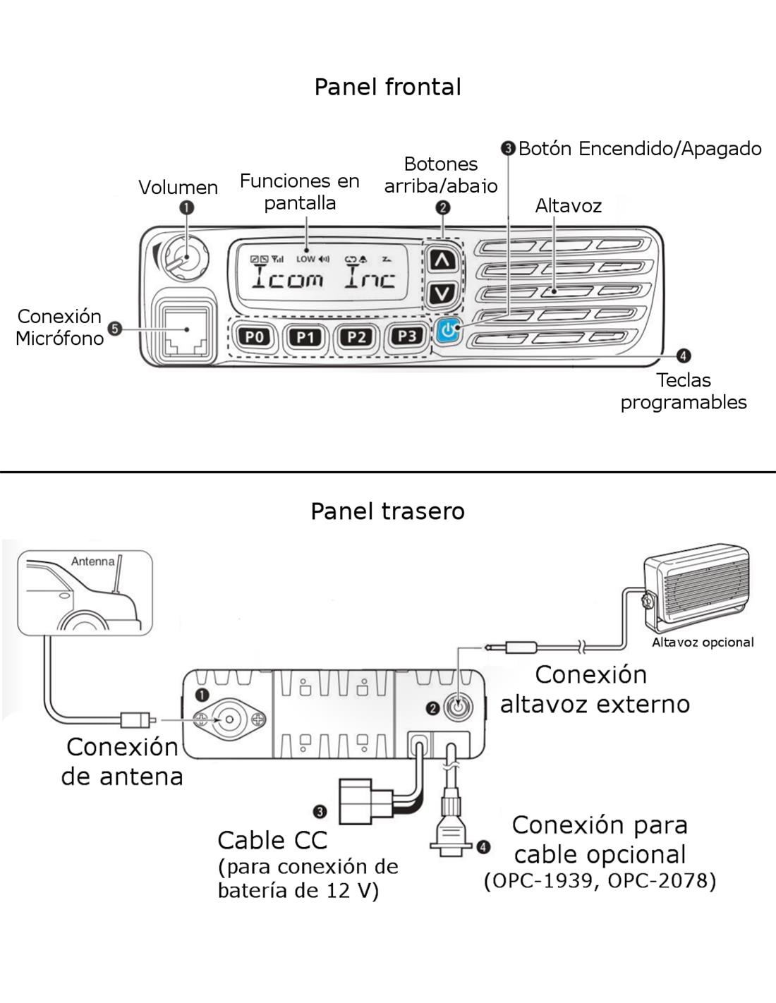 La emisora Icom Analógica y Digital IC-F5122D NXDN tiene un diseño compacto y elegante y con una construcción robusta gracias a su resistente chasis de aluminio fundido a presión y el panel frontal de policarbonato (cumple MIL STD810-F). Con una gran pantalla LCD retroiluminada de 8 caracteres alfanuméricos que nos muestra la información y el estado de operación. Debajo de la pantalla tenemos 4 botones programables (P0-P1-P2-P3) para un fácil acceso a las funciones de uso frecuente.