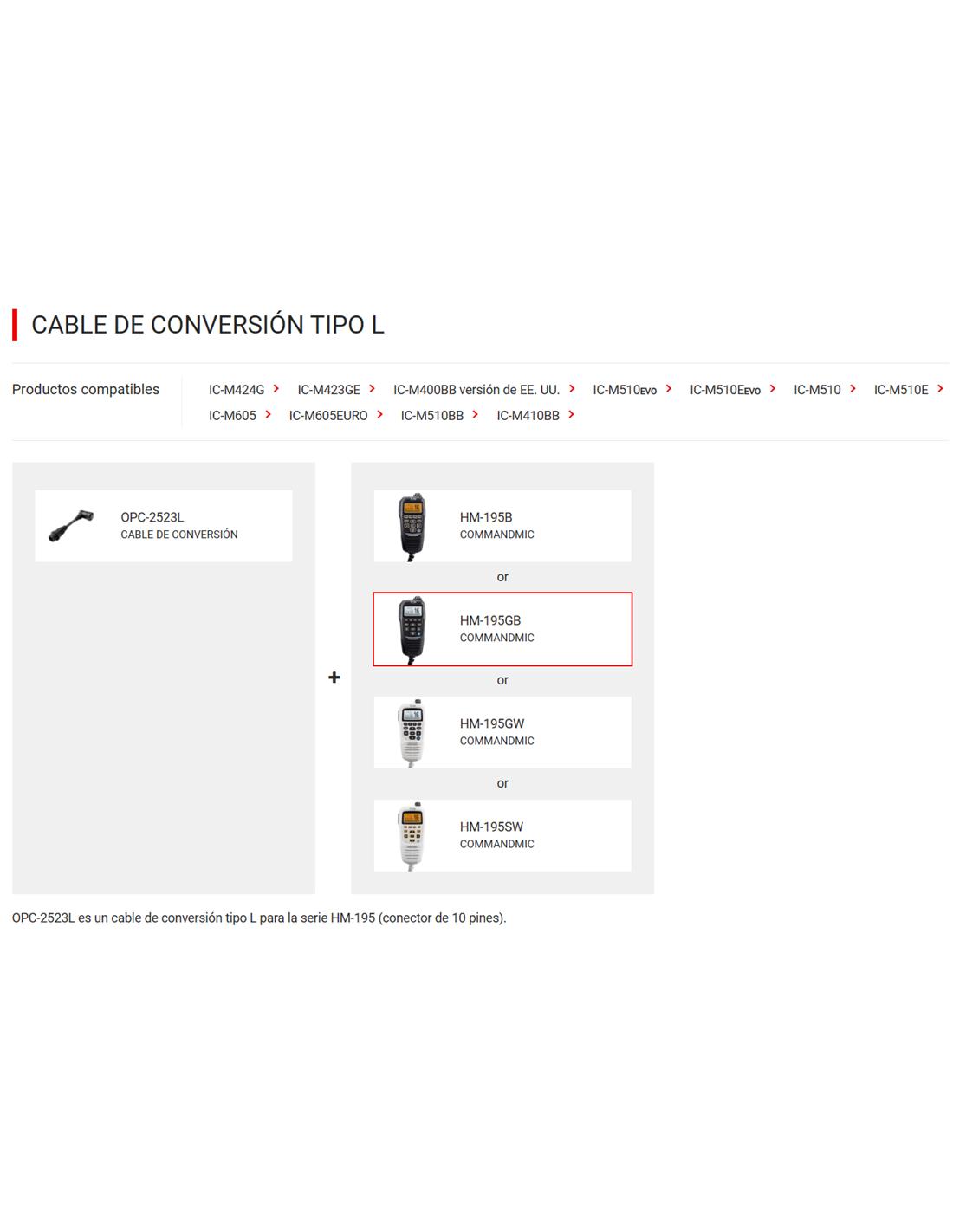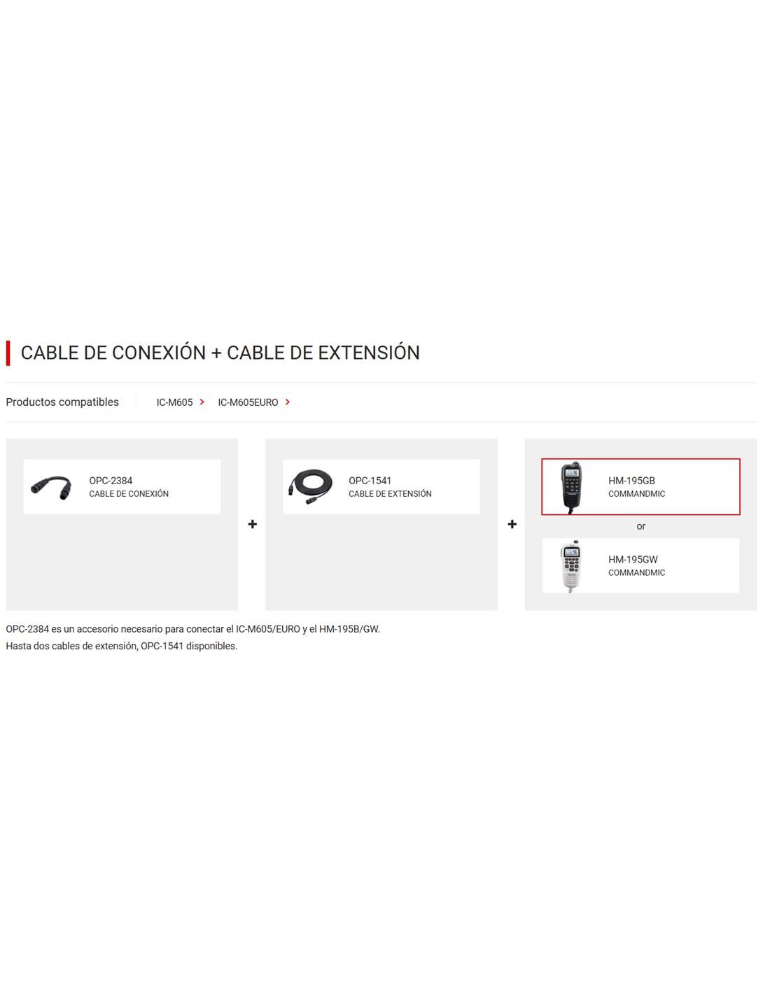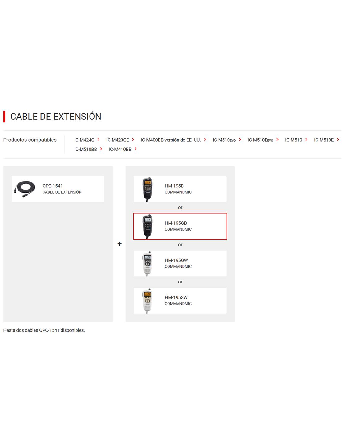 - Compatible con las emisoras marinas de Icom IC-M423GE, IC-M510EEVO, IC-M510E, IC-M506GE, IC-M605, IC-M510BB, IC-M410BB
