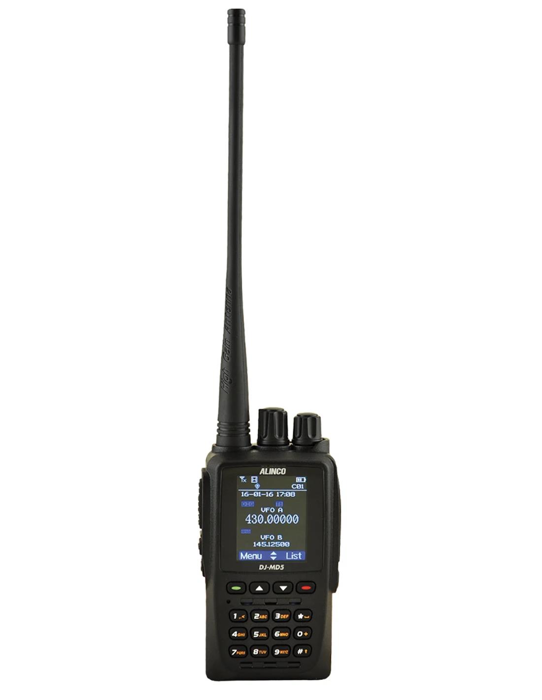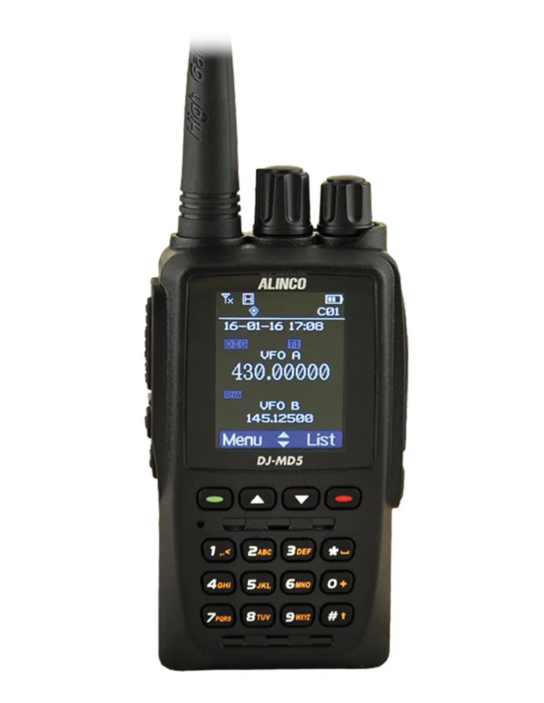 El walkie ALINCO DJ-MD5 de banda dual opera en las frecuencias VHF/UHF. Es compacto y manejable, y destaca por ser la radio digital DMR más pequeña del mercado. Entre sus características se incluyen 4000 canales que ofrecen una amplia capacidad de almacenamiento para configuraciones personalizadas, GPS integrado que permite rastrear la ubicación geográfica, pantalla LCD a color que proporciona información clara y fácil de leer, entre otras.