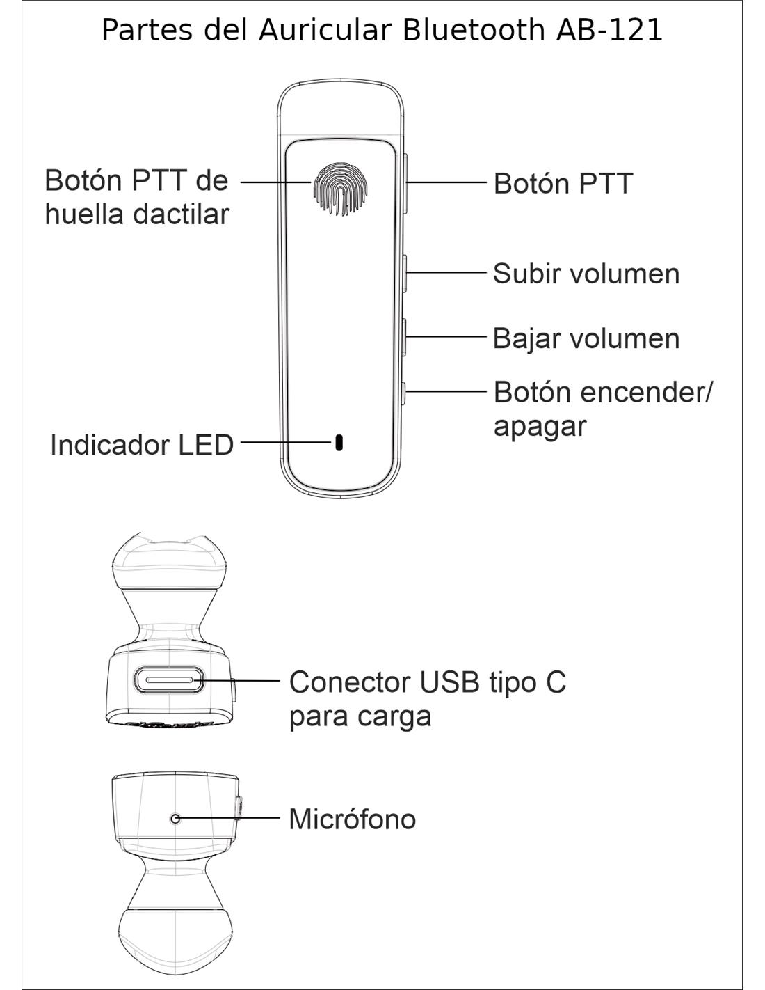 · Microauricular con dos botones PTT: uno de huella dactilar en su parte frontal y el otro en el lateral