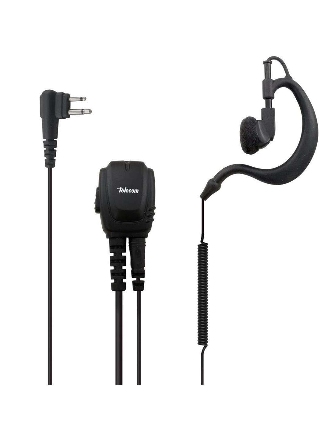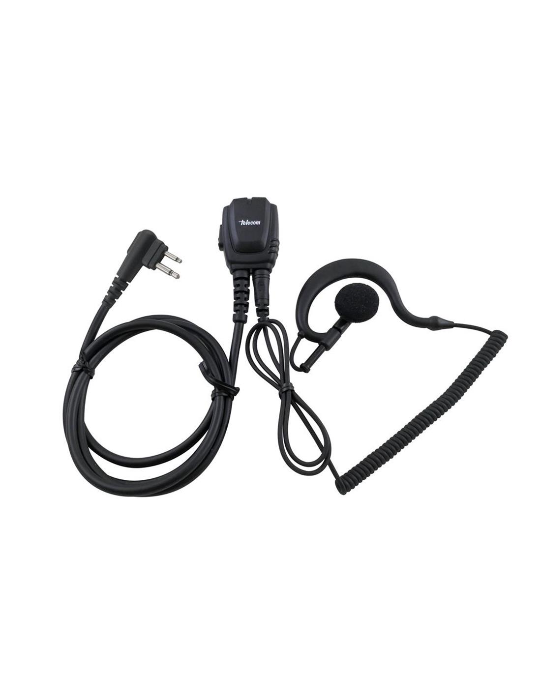 Auricular con micrófono JD-2303 de gama profesional con el auricular flexible para enganchar en la oreja tipo PY-29, PTT robusto de solapa, conexión de 2.5 mm para conectar el auricular al PTT y cable negro rizado. Conexión de 2 pin en "L" compatible con Motorola.