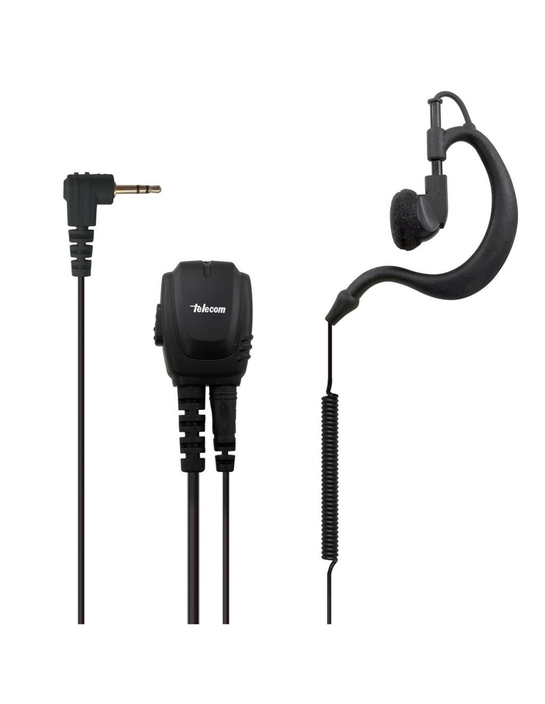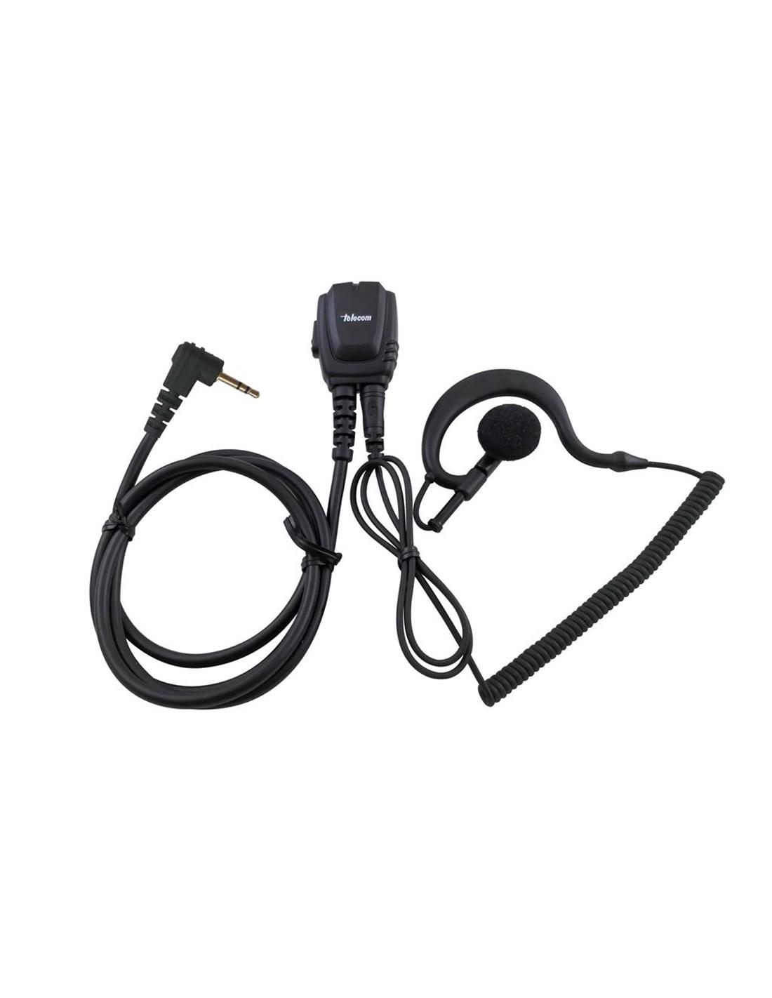 Auricular con micrófono JD-2308 de gama profesional con el auricular flexible para enganchar en la oreja tipo PY-29, PTT robusto de solapa, conexión de 2.5 mm para conectar el auricular al PTT y cable negro rizado. Conexión de 1 pin en "L" compatible con Motorola.