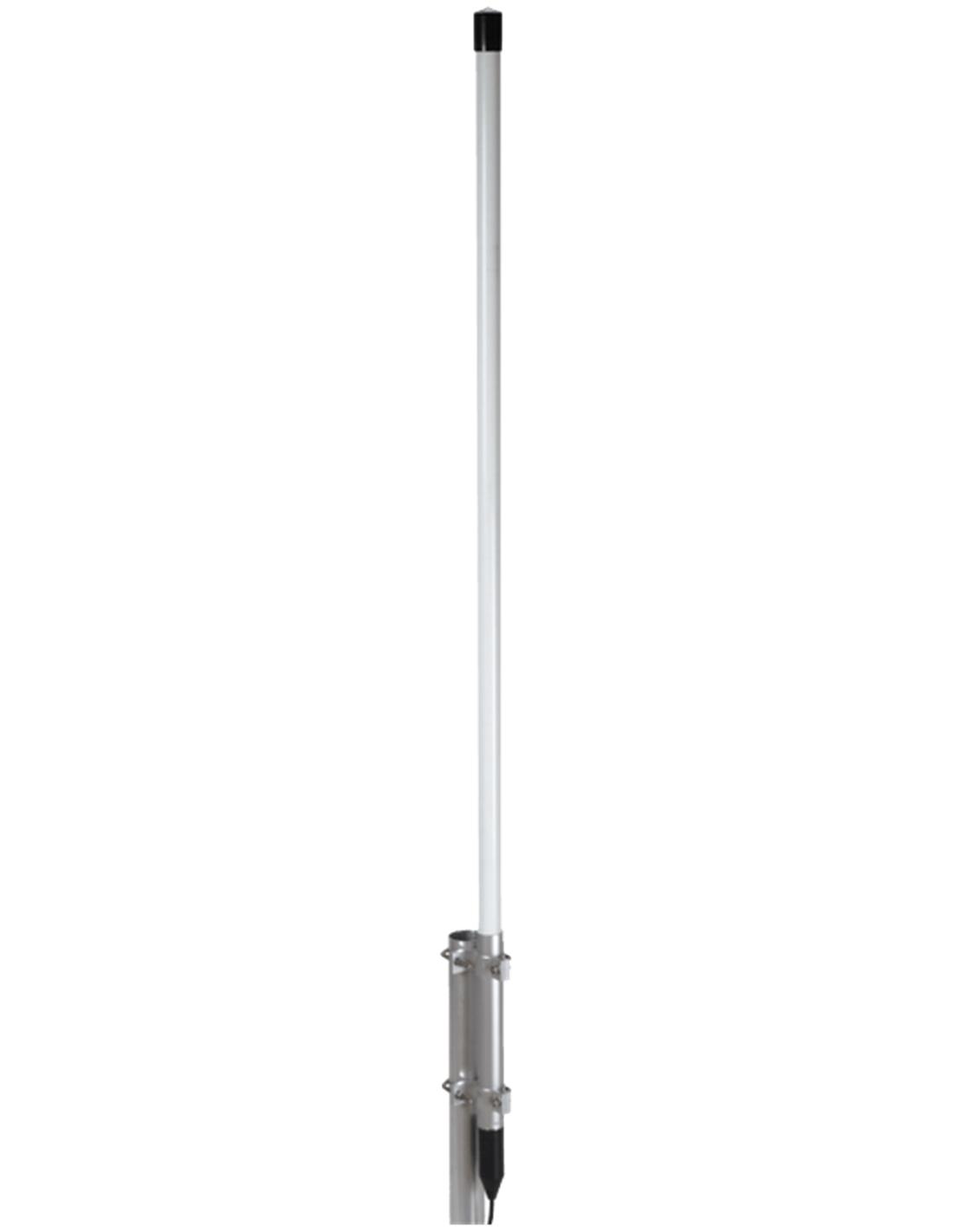 Antena base omnidireccional UHF, muy robusta. ROE < 1.5 en extremos de banda. No precisa ningún tipo de ajuste. Especial aplicaciones PMR Rango 420 - 470 MHz. Encapsulada en fibra de vidrio de alta calidad con protección Ultra Violeta. Sección encapsulado Ø 28.6 mm. Conector N Hembra (HQ) en la base. La parte inferior de la antena está fabricada en aluminio anodizado 6063-T5 para garantizar su robustez y durabilidad. Por protección, todas las partes metálicas están cortocircuitadas a masa. Potencia máxima 75 W. Longitud 1.23m. Cada antena se suministra con su soporte a mástil 35-60 mm Ø y con herrajes de acero inoxidable. Todas las antenas de la serie incluyen Capuchón de caucho Protector EPDM para conector N .