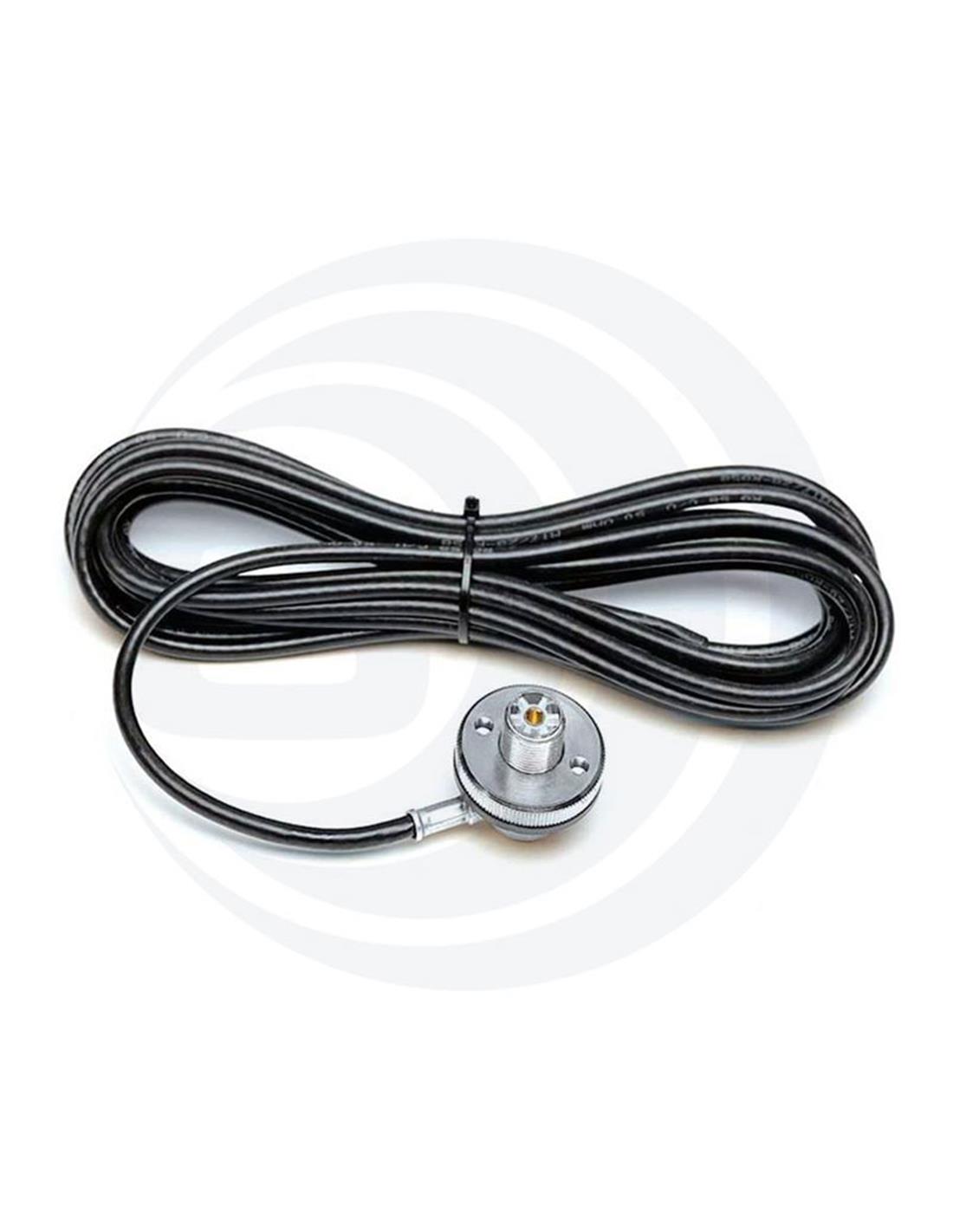 Base SO239 acodada, incluye 4 metros de cable coaxial RG58. Puede fijarse directamente en el vehículo. Compatible con todo tipo de antenas tipo PL. Incluye junta estanca. Compatible con todos los soportes de antena móvil SIRIO. Hasta 500 MHz.