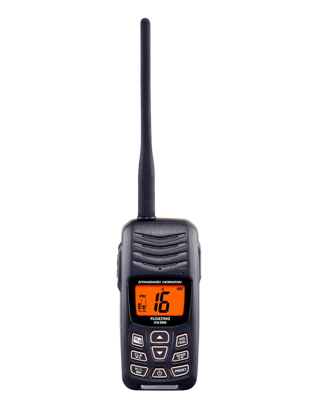En caso de caer al agua, la radio HX300e cumple con el grado de protección IPX8, es lo suficientemente ligera para flotar boca arriba encendiéndose un LED rojo parpadeante que se activa automáticamente para poder recuperar la radio fácilmente (esta luz puede parpadear a diferentes frecuencias o lanzar destellos "SOS" automáticamente aún estando apagada).