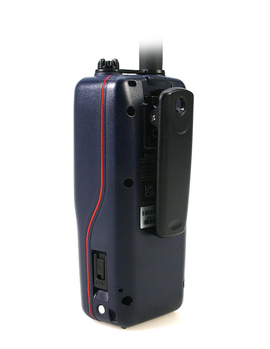 El walkie de marina HX320E es resistente y flota en caso de caer al agua además se puede recupera fácilmente gracias a la luz estroboscópica activada ya que hace que sea perfectamente visible en el agua. Cumple con el grado de protección IPX7. Viene equipado con un conector de carga USB tipo C y se suministra con el cable de carga USB y el adaptador USB-CA para cargar rápida y fácil. También incorpora Bluetooth de manera que se puede operar con manos libres.