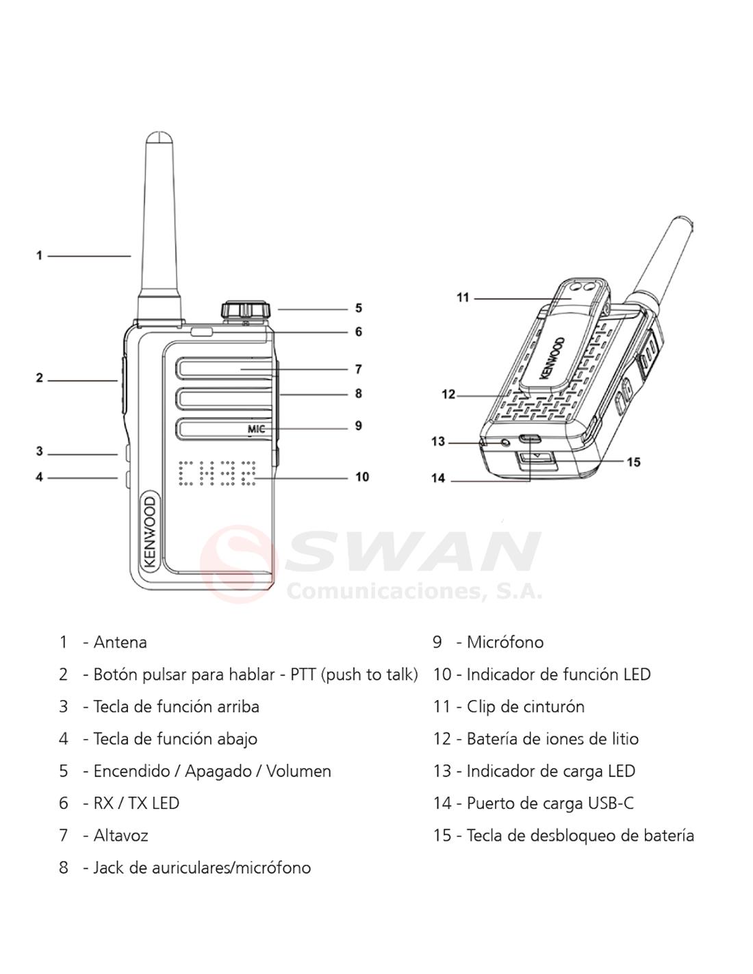 El Walkie KENWOOD UBZ-LJ9 no necesita ningún tipo de licencia para su uso. Es ligero, fiable y compacto con un tamaño reducido y un peso de tan solo 138 gr. Este equipo es compatible con los otros terminales de uso libre de Kenwood y con prácticamente con cualquier otra radio PMR446. Además es compatible con todos los accesorios de audio de dos pin Kenwood. Están protegidas contra el polvo y la humedad según IP32 y tienen una larga vida útil gracias a su diseño robusto.