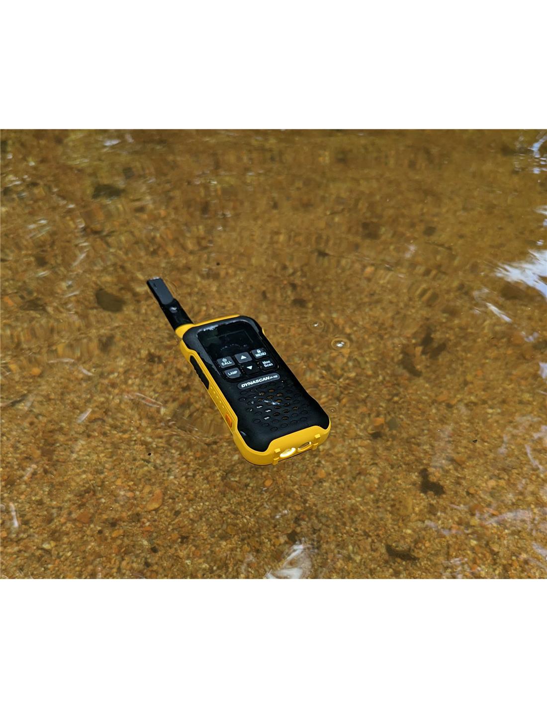 El walkie DYNASCAN F-15 es de uso libre PMR446 de manera que no necesita licencia. Es un equipo robusto, potente, e impermeable, de modo que te mantendrá en contacto incluso en los entornos más extremos. Este walkie talkie no solo flota en el agua, sino que también se pueden sumergir hasta 1 metro durante 30 minutos. Tiene una luz LED integrada y un flash LED blanco que se activa automáticamente cuando entra en contacto con el agua. Además, cuenta con un botón de emergencia muy visible en el lateral que, en caso de alerta, activa una llamada en modo manos libres, a la vez que da un aviso sonoro para informar a tu grupo de que necesitas ayuda.