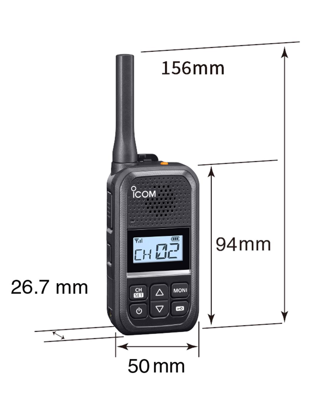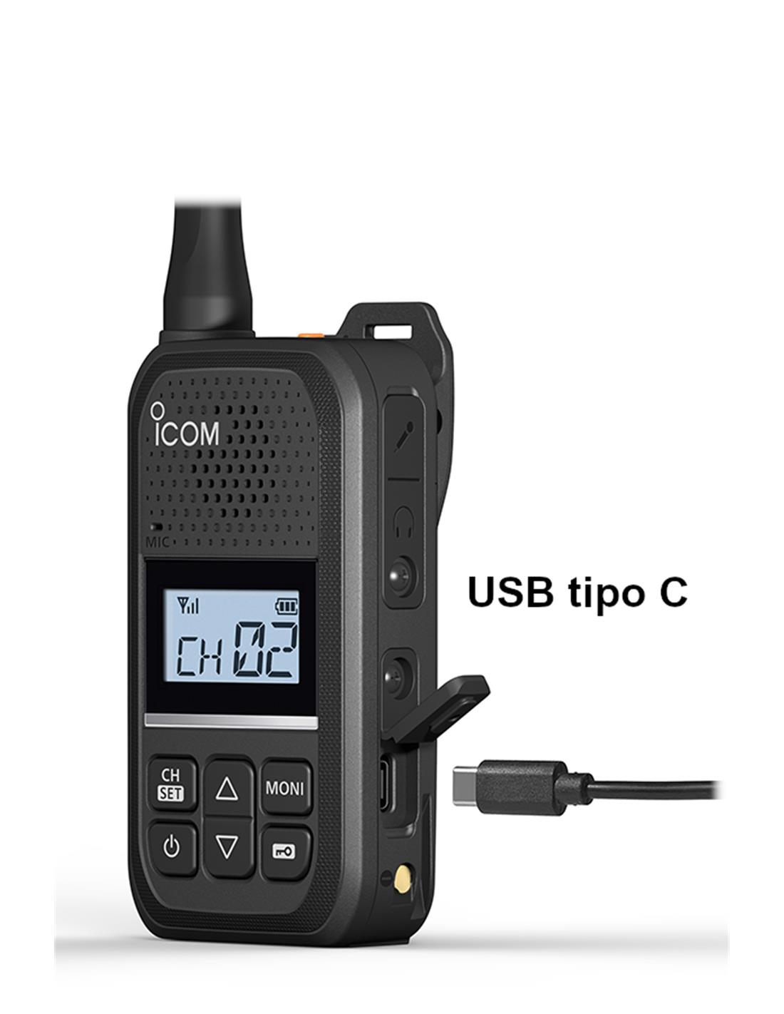 El walkie PMR446 ICOM IC-U20SR destaca por su tamaño y peso reducido con tan solo 157 gr. La gran pantalla LCD retroiluminada permite una lectura clara y bien definida de los caracteres e íconos en cualquier condición, incluso a plena luz del sol. El teclado simplificado ha sido diseñado para garantizar el uso del dispositivo de una manera rápida e intuitiva.