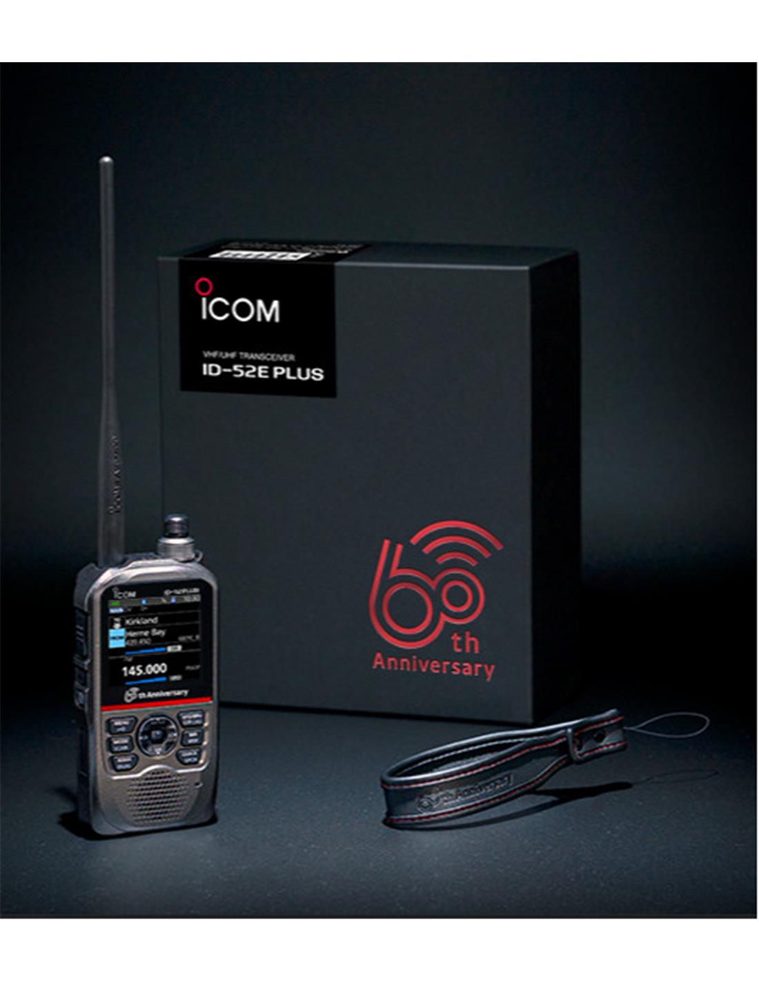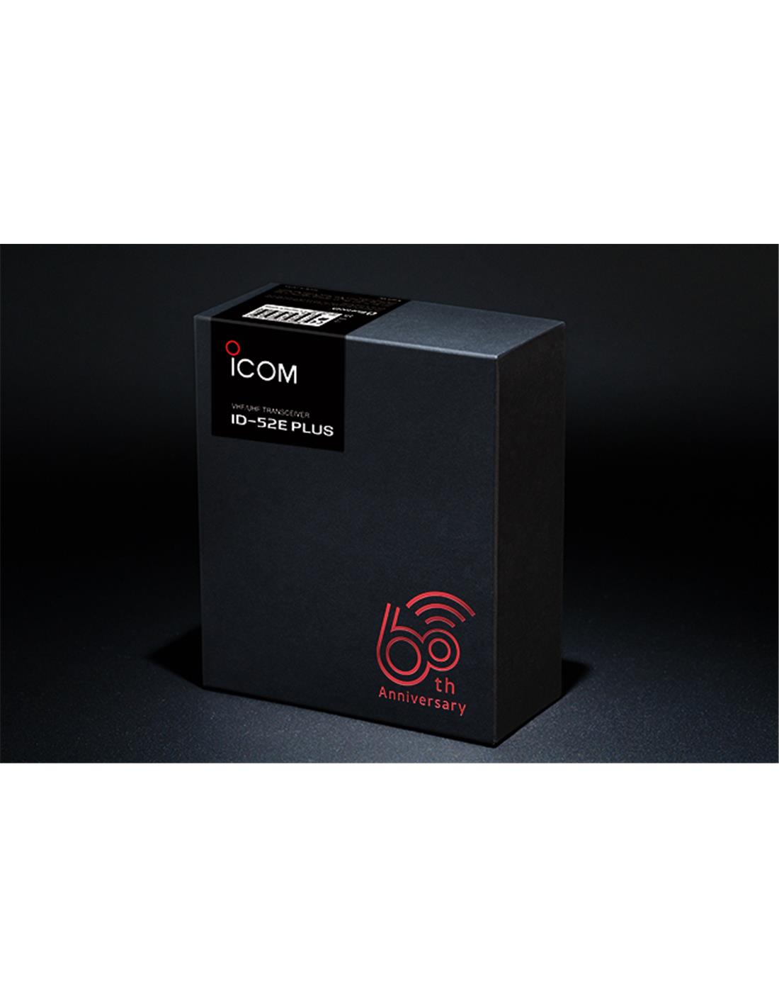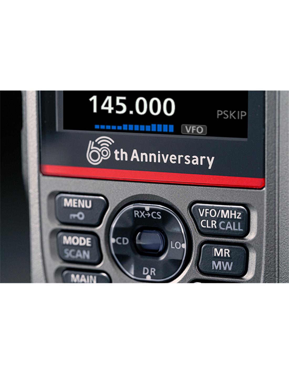 El cuerpo, incluida la perilla de volumen, presenta una pintura metálica que recuerda al titanio. Este color intenso y sofisticado resalta la singularidad del modelo del 60 aniversario. Además, la inclusión del rojo característico de la marca Icom como acento crea una impresión que es a la vez de alta calidad y dinámica.