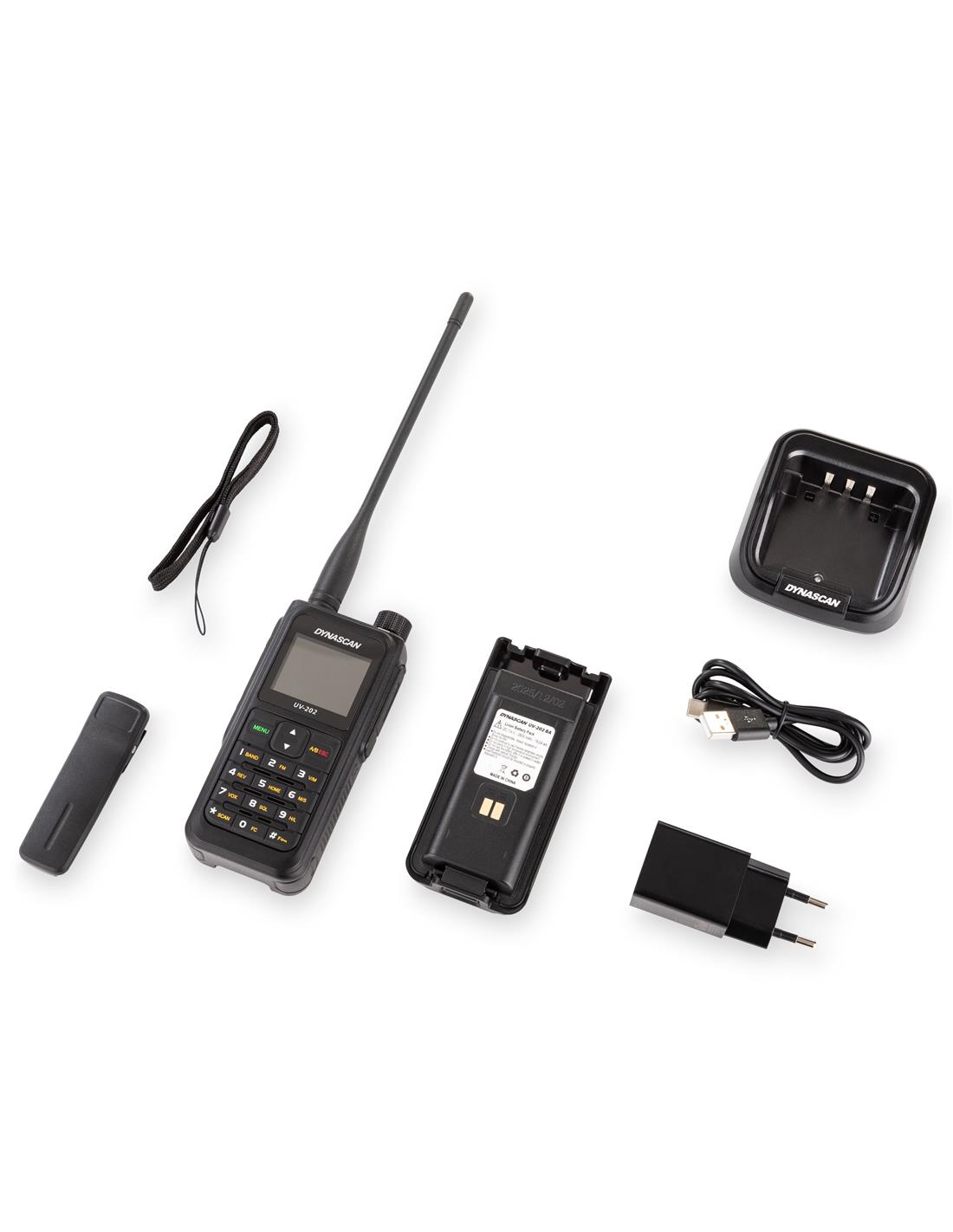 El Dynascan UV-202 incorpora reducción inteligente de ruido, proporcionando comunicaciones claras incluso en situaciones con alto nivel de interferencias.